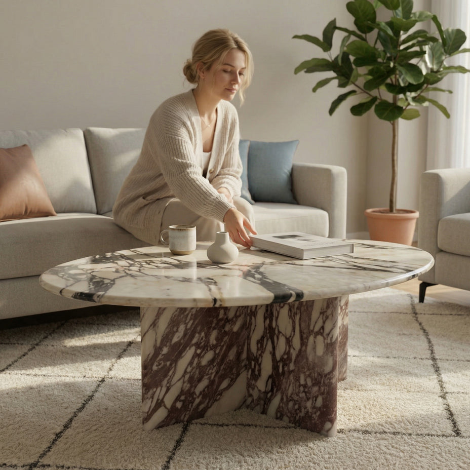 Our marble tables are crafted from natural stone and designed to anchor refined interiors. Each table reveals the unique character of marble, with subtle variations that make every piece truly one of a kind.